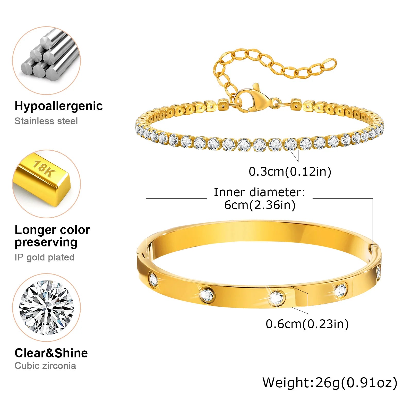 Tennis Chain Bracelet Cuff Set